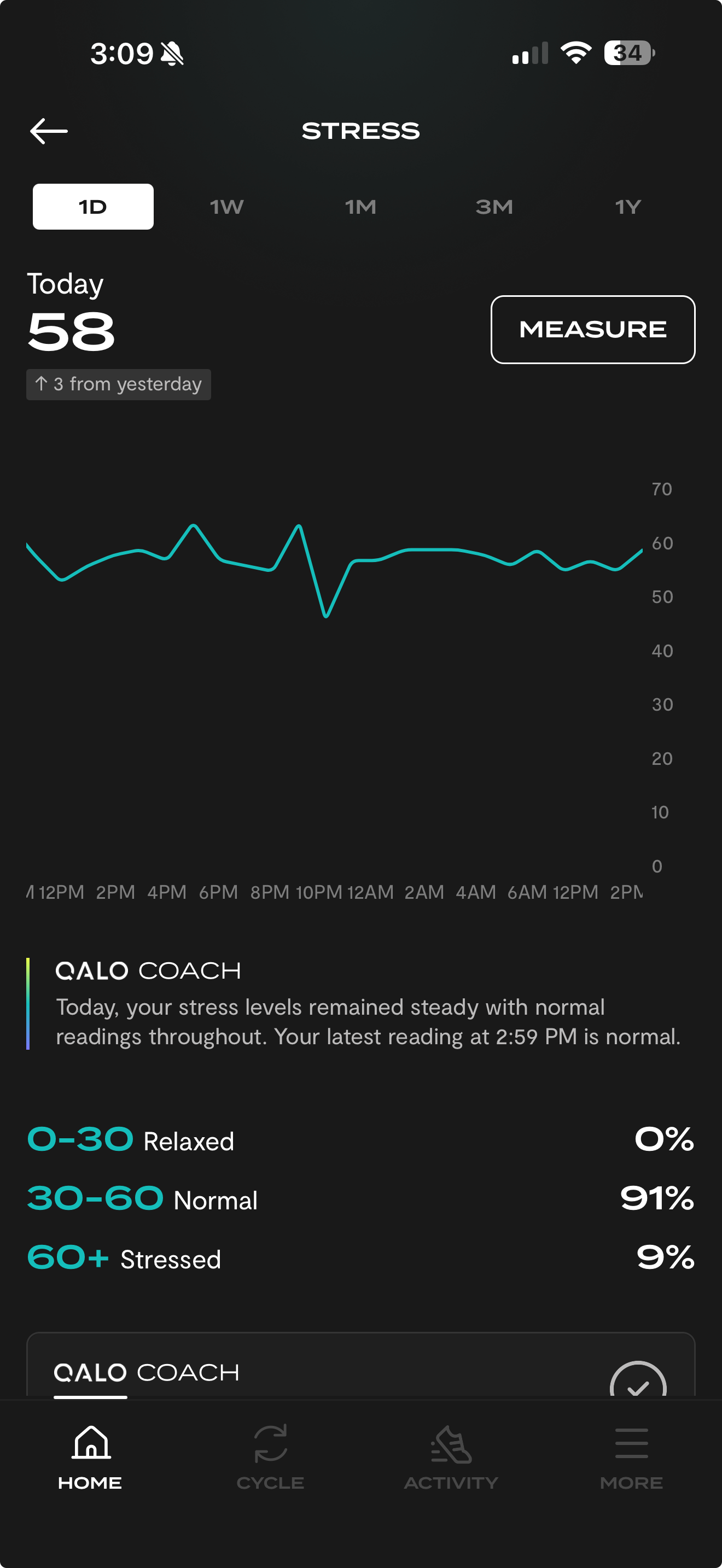 A lower stress score means your nervous system is calm and regulated. A higher score means your body is under load — whether from physical exertion, poor sleep, emotional pressure, or illness. Both are normal. What matters is the pattern over time.